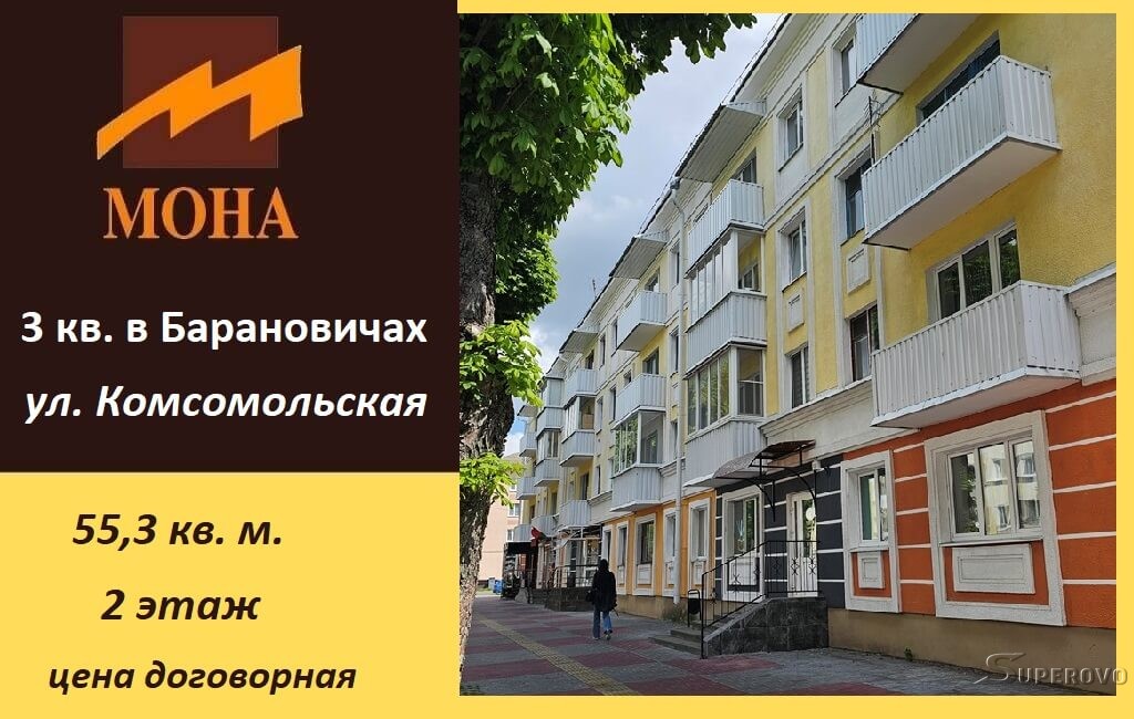Продам 3-комн. квартиру в Барановичах в самом центре по ул. Комсомольская.