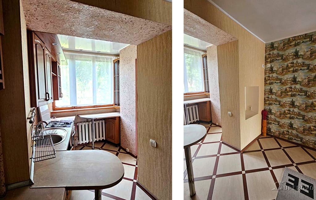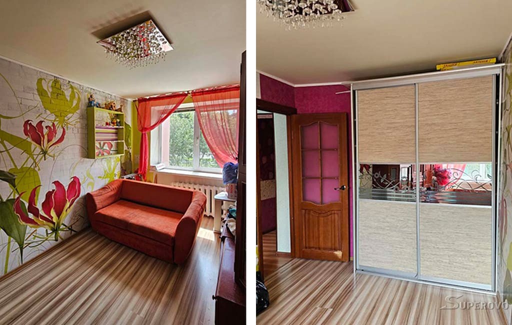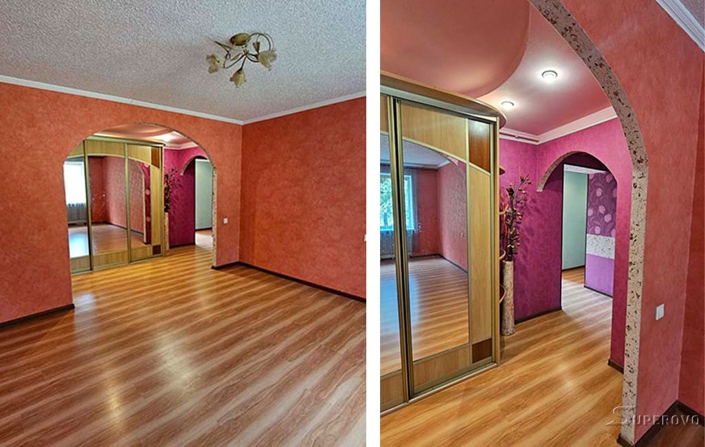 При продаже остаются встроенные шкафы-купе и кухонный гарнитур.